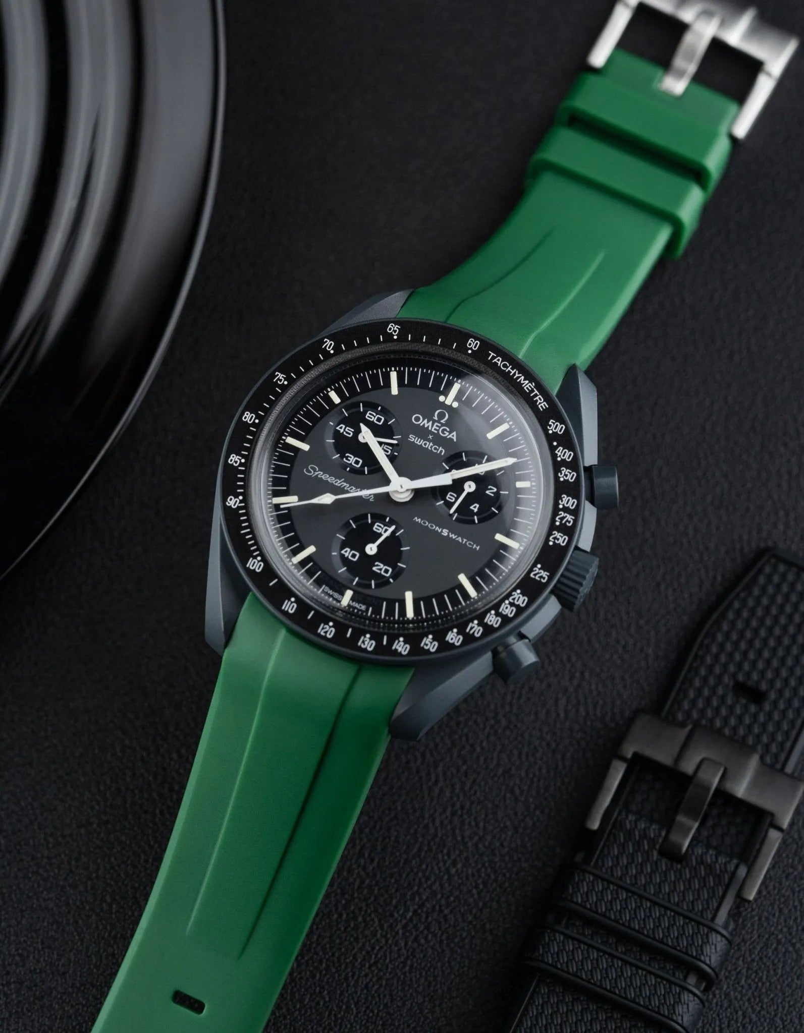 Elevate your watch collection with this high-quality green rubber strap. Designed for durability and style, it features a sleek curved design, ensuring a comfortable fit on your wrist. Ideal for those seeking a versatile and aesthetically pleasing accessory to enhance their timepiece.